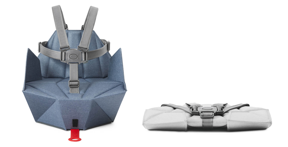 Our Bombol Booster folds flat to the size of a small menu when you don’t need it and pops open to become a sturdy, comfortable booster seat when you do.